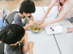 スライムを作る過程の物質の変化に興味をもつ子どもが多く、大盛況でした。