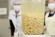 引き続いて,受講者の皆さんに豆腐作りの体験実習をしていただきました.豆腐が固まる原理についての解説を加えながらの実習で,参加者も興味津々でした.グループによって豆腐の固まり具合に違いがあり,夕食時にみんなで食べ比べました.