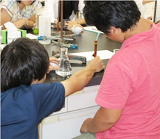 今回の講座では、身近な夏野菜であるトマトとトウガラシをとりあげ、その来歴、多様な利用法や品種について解説しました。講義では、教室内だけでなく、畑や栽培温室に行き、植物体・栽培風景を見せる・果実を食べることで、参加者が野菜や農学の面白さを実感できる機会になったのではないかと思います。実験実習では、参加者らは初めて手にする実験器具に戸惑いながらも、分析実験を通じて、分かる喜びや科学への関心を高めることができたのではないかと思います。